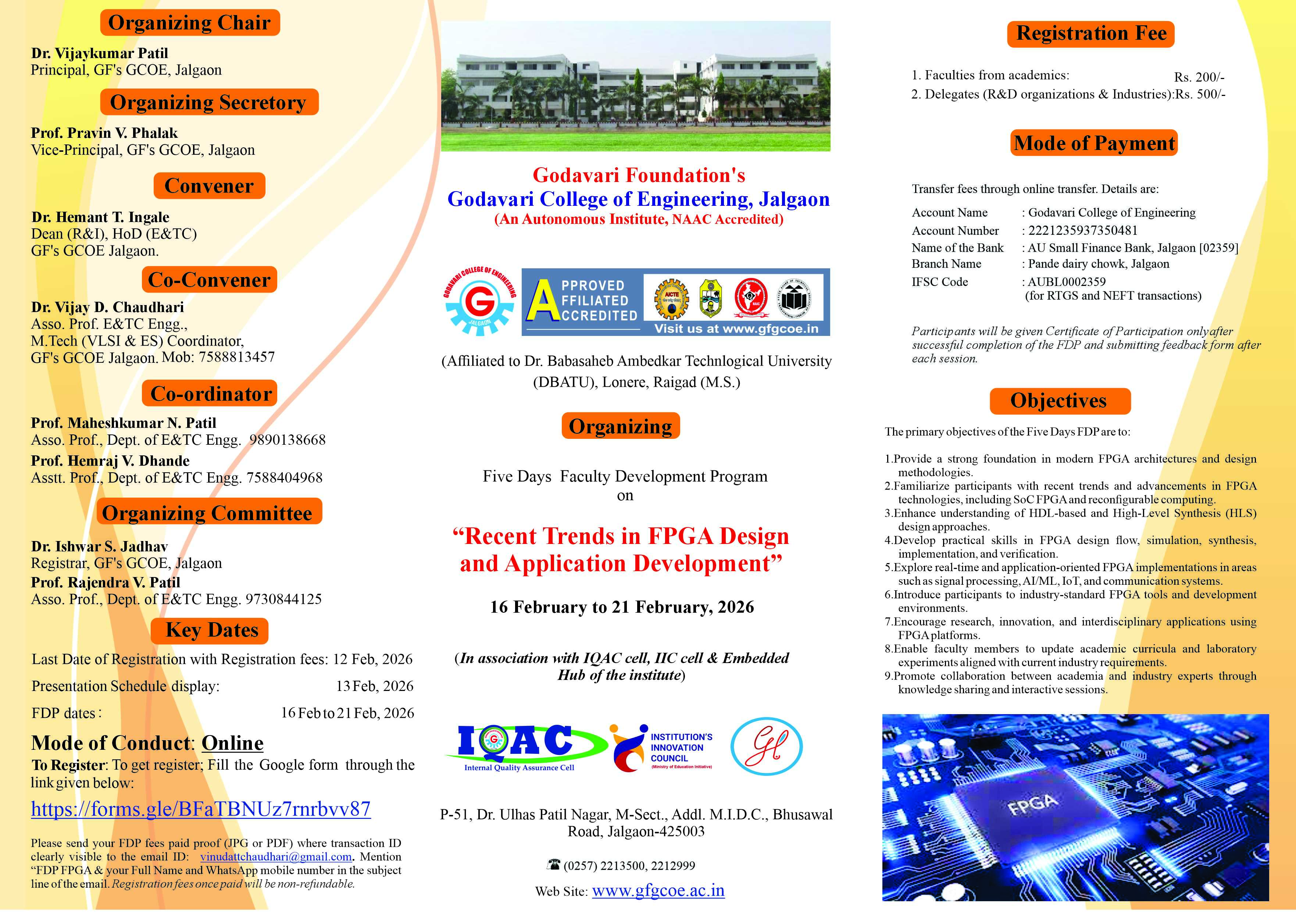 Please mention “FDP FPGA & <your Full Name> and <WhatsApp mobile number> in the subject line of the email.