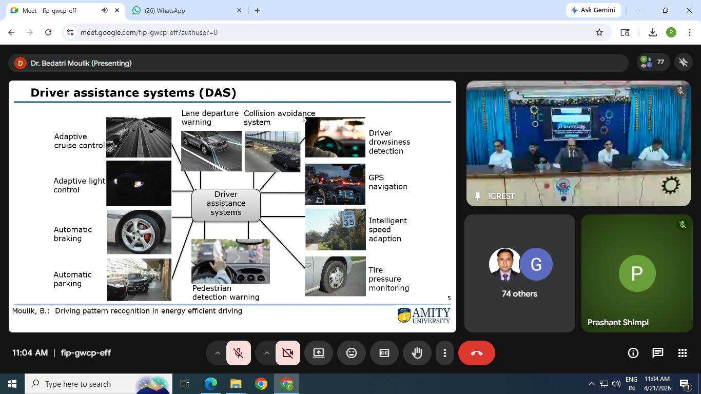 The keynote address was delivered by Dr Bedatri Maulik from Amity University, Noida, on the topic “Driving Pattern Recognition in Energy Efficient Driving.” Her insightful session covered critical global challenges such as environmental pollution, the impact of conventional vehicles, and road safety concerns. She elaborated on advanced driver assistance systems including adaptive cruise control, automatic braking, intelligent speed control, and lane departure warning systems.