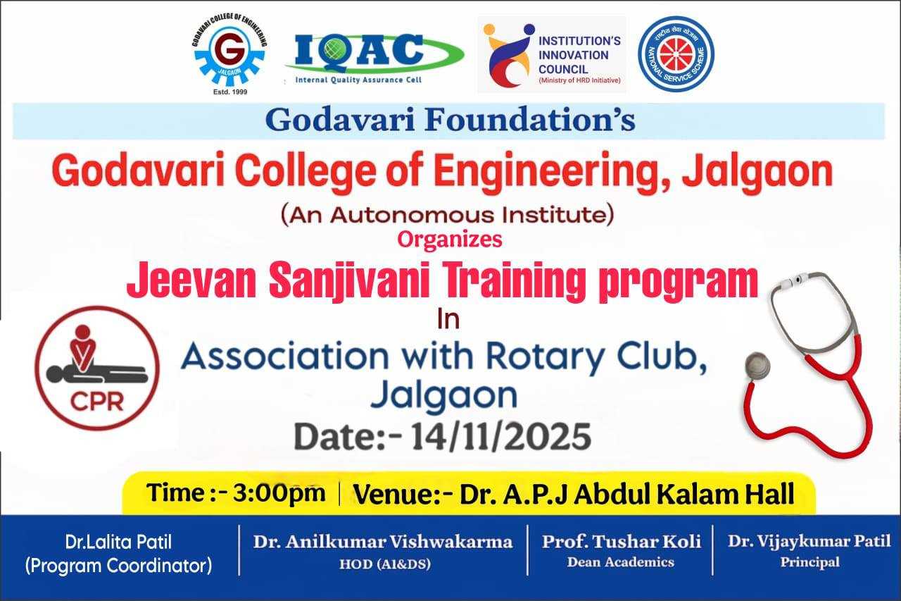 Today on 14 November 2025, a Life-Saving Emergency Care and CPR Training Program was successfully conducted at GF's Godavari College of Engineering, Jalgaon under the joint collaboration of Rotary Club Jalgaon and the Society of Anesthesiologists.