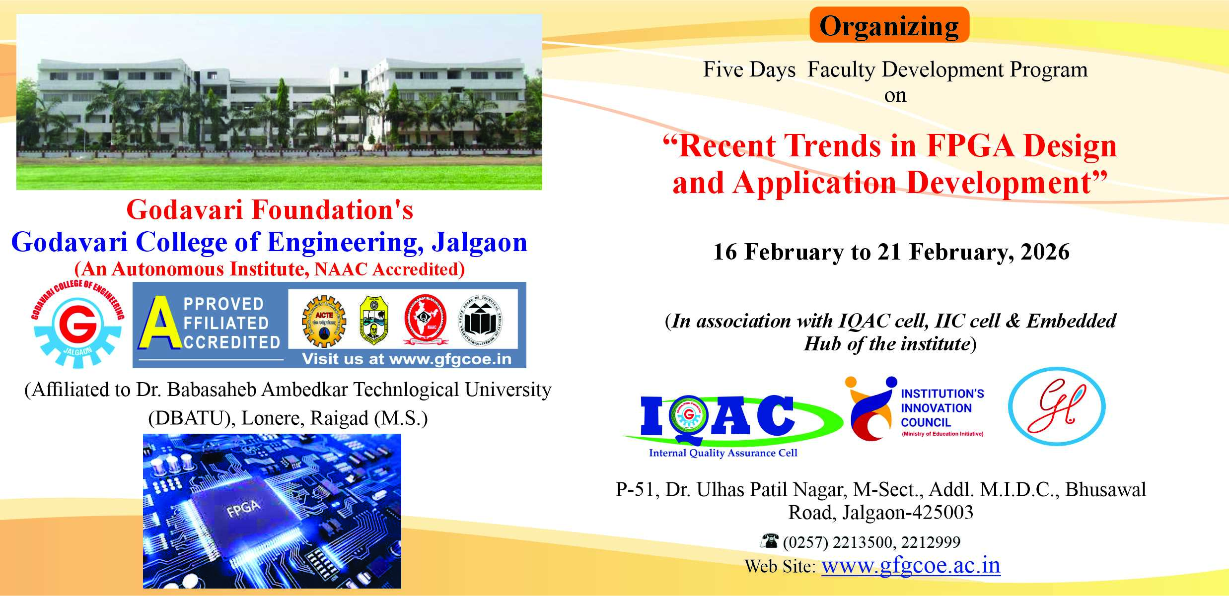 Greetings from GF's Godavari College of Engineering Jalgaon. (An Autonomous Institute, NAAC Accredited), affiliated to Dr. Babasaheb Ambedkar Technological University (DBATU), Lonere-Raigad.