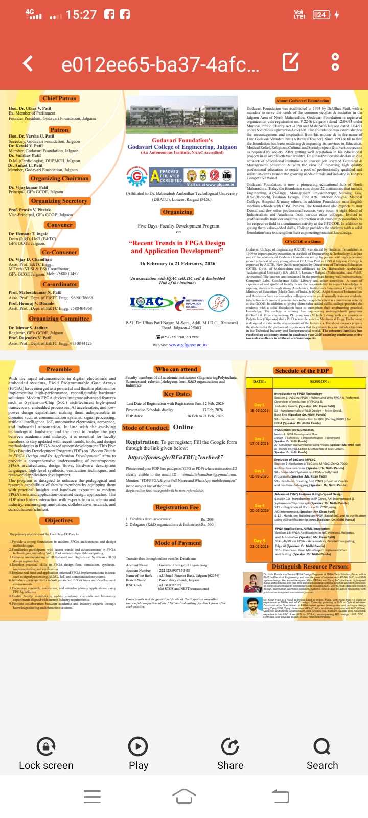 NOTE: Please send your FDP fees paid proof (JPG or PDF) where transaction ID clearly visible to the email ID: vinudattchaudhari@gmail.com.